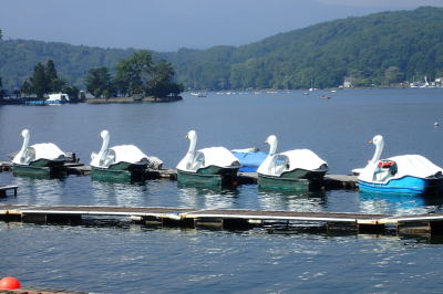 湖は観光船にとボート、水上スキーで大賑わいですが、褐藻感と無縁の湖畔には爽やかな風が吹き最高のポタリングロケーションです。