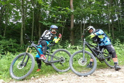 ◆白馬岩岳のユリ畑ダウンヒルでリフレッシュ。 快晴、快速ダウンヒル、麓のユリ畑も満開です。 今シーズン初のダウンヒルは無事快走。 二人とも転んで泥&アザだらけになりました。 白馬岩岳DH備忘録。 【走行データ】 距離5.0km 最速34.7km/h 平均12.2km/h 時間24m40s 【サスペンション空気圧】 スタンピーF:70/R:100(PSI)・ ルーマーF:70 /R:70(PSI) 【タイヤ空気圧】 スタンピーF:1.0/R:1.0(kgf)・ ルーマーF:1.0/R:1.0(kgf) メーカー推奨値より低めにセット。 二人とも、難しいセクションクリアー直後に転倒。 エルボーパッド、ニーパッドの重要性を痛感した次第(^^;) 白馬岩岳ダウンヒル動画 ゴンドラからユリ畑(約5分) 山頂駅~ユリ畑(約10分)