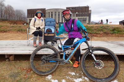 ◆今シーズン岩岳ファイナル、新設コースが超楽しい! 初冬のゴンドラ山頂駅は、薄っすらと雪景色。 オプションの泥まみれも、漏れなく付いてきます。 ダウンヒルコース動画