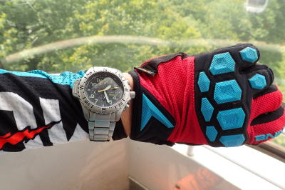 ◆2018.07.21 白馬岩岳MTBパーク ユリ畑が満開、風も爽やか~ 緑深き林間のフロートレイル、シングルトラックを快走。 ダウンヒルに超集中して、頂上のブナ林でWOLF iとマッタリ。 至福の休日です。 山頂のユリ園を鑑賞していると、信濃タイムスの取材を受けました。 白馬岩岳MTB パークの魅力を熱く語り、マウンテンバイクの魅力をアピール。 山頂のレストラン「スカイアーク」では、丸山マネージャーにご挨拶。 素晴らしいコース整備に、謝意を伝えました。 山頂ランチは「サラダうどん」と「白馬ポークとん丼」 ダウンヒル2本目 至高のフロートレイルに笑いが止まらず(^.^) 3本目で、コース全体のイメージを掴みました。 次回のアルペンダウンヒルが楽しみです! 実は、妻の視界から消えた直後にバンプでフロントがグリップアウト。 左肩から見事にダート法面へスライディング。 幸い左腕の軽い打撲のみで、左肩、左肘のダメージは皆無でした。 白馬岩岳MTBパーク必須アイテム(備忘録) 老若男女を問わずダウンヒルでの転倒は少なからずあります。 怪我のリスクを軽減し、パークに迷惑を掛けない(←ここ重要)ためにも保護具を完全着用しましょう。 今回2本目のジャンプセクションで、フロントがグリップアウト。 左肩から見事にダート法面にスライディング。 幸い左腕の軽い打撲のみで、左肩、左肘のダメージは皆無でした。 【キーワード:極力肌を露出しない】 ・フルフェイスヘルメット ・ゴーグル(プリズムトレイル@オークリー等) ・フルフィンガーグローブ(ガードパッド付) ・ボディープロテクション ・ニーガード ・エルボーガード ・DH専用ジャージ ・DH専用ロングパンツ 過去に数回落車転倒していますが、頭、肩、肘の順番で衝撃しています。 多少の打ち身捻挫は避けられませんが、保護具着用で重篤な怪我は回避できました。 ゴーグルは粉塵、砂利、枝等から眼球を守る重要アイテム。 直射日光のダートから、木漏れ日のシングルトラックと視界が目まぐるしく変化します。 ギャップの凹凸認知や周辺視界確保のためにも、クォリティーの高いレンズがお勧めです。