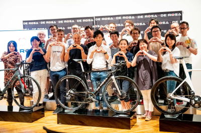 ◆2019.07.31DE ROSA 2020 PRIVATE SHOW会場、六本木AXIS GALLERYを訪問。 2020のニューモデル、SK Pininfarina、MERAK、IDOL DISCのフレームに輝く、ピニンファリーナデザインのNewロゴが眩しい。 キープコンセプトのSKとIDOLはフレームデザインを仔細に観察すると、凝ったチューブ形状を美しい塗装で艶やか仕上げていることに気付きます。 SKとIDOLのオリジナルデザインの優秀さを再認識し、これからも大切に乗り続けます。 創設者の歴史を受け継いだ社長が、新しいロゴに相応しいバイクを次の世代へ伝承した瞬間に立ち会うことができました。 社長自らが家族を伴って来日しユーザーと親しく接する姿勢は正にAzienda familiare italiana! DE ROSAの魅力と魔力にドップリと漬かりました。 今回はPROTOSを駆る西加南子選手と、今年のジロで「アツヤマ!」コールが起きたNIPPO Vini Fantini Faizaneの初山翔選手が来場。 web版サイスポ編集長の中島さんの名MCでトークショーも大いに盛り上がりました。 お土産はじゃんけん大会で勝ち取った大型バナー(90cm*120cm) クリスティアーノさん、初山選手、西選手から直筆サインを記入頂きました。 初山選手サイン入りNIPPOチームキャップも嬉しい(^^♪ 持参したクラブジャージにも、ちゃっかりサインして貰い大満足です。