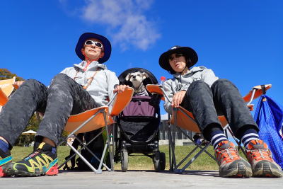 WOLFiも一緒に山ランチ、秋の日差しにが眩しそう。