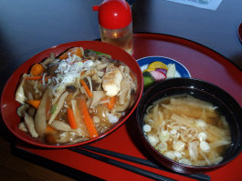 塩之トンネルを越え和島「和らぎの家」でランチタイム、本日のメニューは冬季限定「きのこあんかけ丼」。