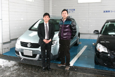前車GOLF-GTは25680kmでクロスゴルフにバトンタッチ。 100mを10秒台で走りきる現役スプリンターの営業さんと。