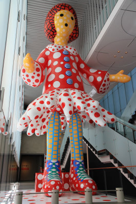 水玉と原色をモチーフにした前衛的なアートは、大地の芸術祭「松代・農舞台」でもお馴染です。