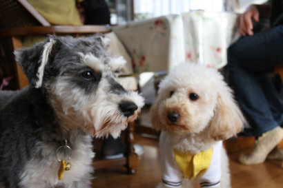 08.12.28 お友達宅を訪問、トイプードルのチャップくんとご満悦。
