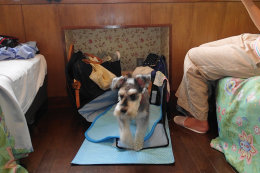 他のワンコに囲まれて若干緊張気味のWOLFiでしたが、お行儀良く宿泊できました。